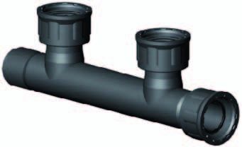 Complete verdelers met rubberen afdichtingsring. Te bevestigen met buisklem 32 mm. 1” binnendraad.