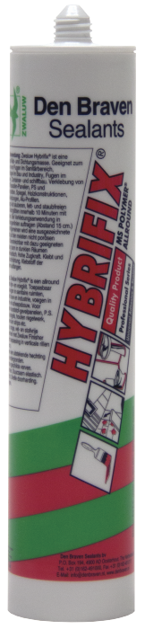 Zwaluw Hybrifix® - Universele constructieve hybridelijm en -kit. Verlijmen, monteren en afdichten. Binnen en buiten te gebruiken. Schuurbaar na volledige uitharding. Geschikt voor sanitaire toepassingen. Perfecte hechting op de meeste ondergronden zonder primer. Zwaluw Hybrifix is speciaal ontwikkeld als universele voegkit voor aansluitvoegen in de bouw en industrie. Universele constructie lijmkit voor het verlijmen van vele bouwmaterialen zoals: steen, beton, glas, gips, PU, PVC, harde kunststoffen, emaille, keramiek, koper, lood, zink, aluminium, metalen, legeringen, R.V.S., HPL- en cementvezelplaten, hout en verfsystemen. Afdichten en verlijmen in koelcellen en in ruimten voor voedingsmiddelen.Specificaties