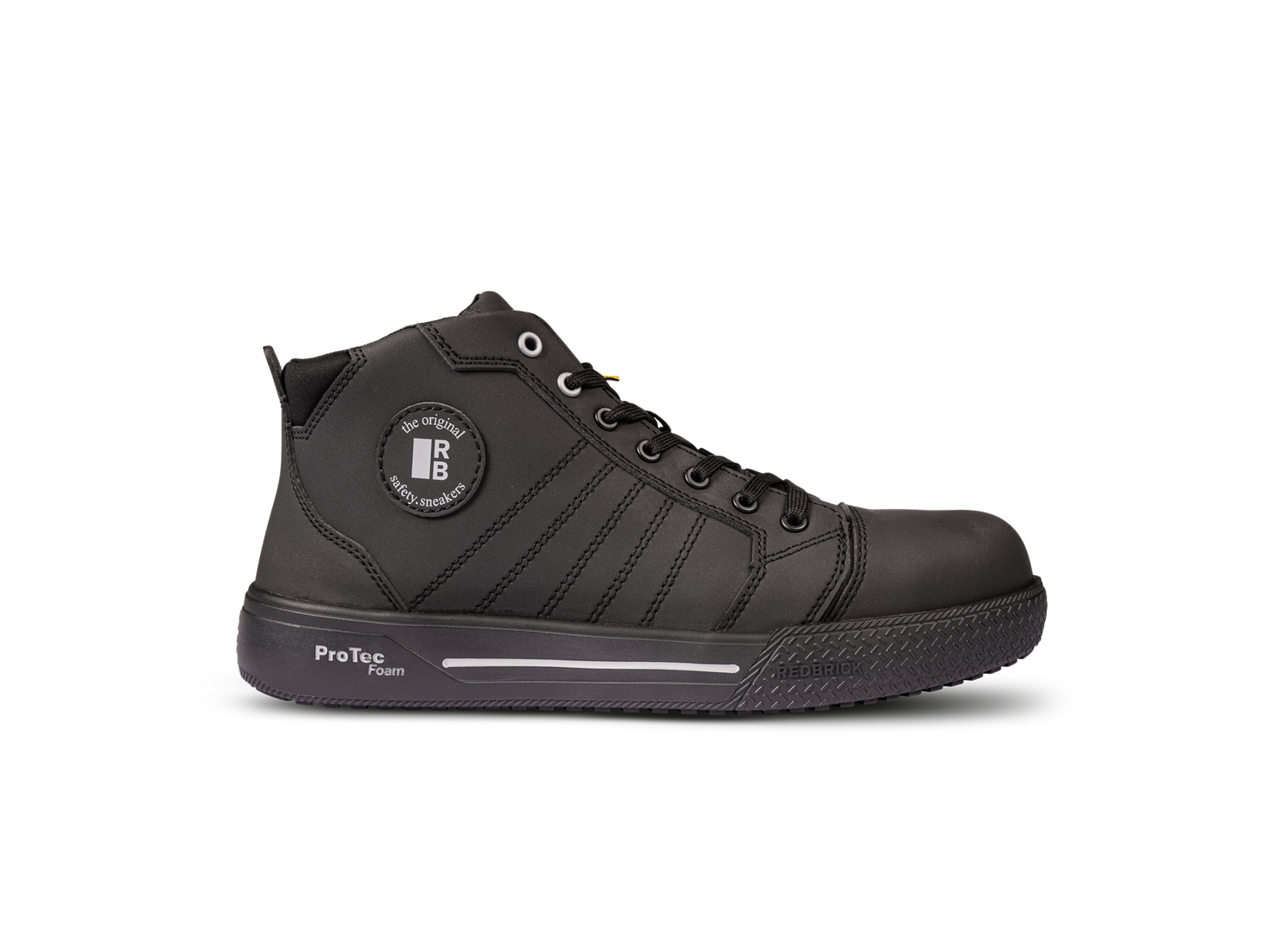 De Beater High van Redbrick is een hoge, zwarte S3S sneaker veiligheidsschoen. Dit lichtgewicht model heeft een microvezel nubuck bovenwerk. De schoen heeft een veiligheidsneus van composiet en een metaalvrije anti-perforatiezool, gemaakt van sterke technische vezels. De vlakke zool is slijt- en slipvast. Deze is bovendien gemaakt van het innovatieve ProTec™ Foam. De combinatie van slijtvast TPU op de loopzool en het gebruik van ETPU binnenin, maakt de zool dempend en licht van gewicht. Deze veiligheidsschoen is ESD getest. De inlegzool is uitneembaar zodat je deze na een werkdag kan laten drogen en luchten. De schoen is volledig metaalvrij.