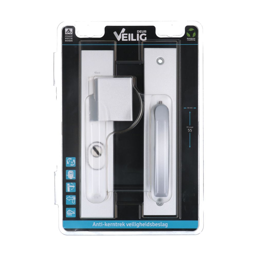 Het Veilig veiligheidsbeslag uit de 2200/2300 serie is SKG drie sterren gecertificeerd en beschermt tegen kerntrekken, een veelvoorkomende inbraakmethode. Het deurbeslag bestaat uit een binnenschild en een buitenschild met verstelbare kerntrekbeveiliging. Doordat deze beveiliging verstelbaar is, past deze nagenoeg op elke cilinder en kunt u in de meeste gevallen uw huidige cilinder blijven gebruiken.