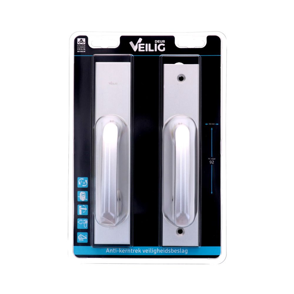 Het Veilig veiligheidsbeslag is leverbaar in een kruk-kruk en duwer-kruk uitvoering en is beschikbaar in de meest gangbare pc-maten 55, 72 & 92.
