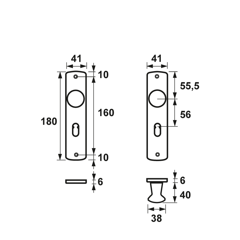 Axa Binnenbeslag kastknop sleutelgatafstand 56mm F1| Afname Per: 1 Stuk| Bewerking: geanodiseerd | Breedte (mm): 41 | Hart op hart (mm): 56 | Hoogte (mm): 180 | Kleur: F1 | Materiaal: aluminium | Merk: Axa | Type: 6350 | Uitvoering: kast sleutel | Korte beschrijving: Type: Curve Kastdeurschild\n Toepassing: binnendeuren\n Aanbevolen schroeven: 4,0 x 20 mm